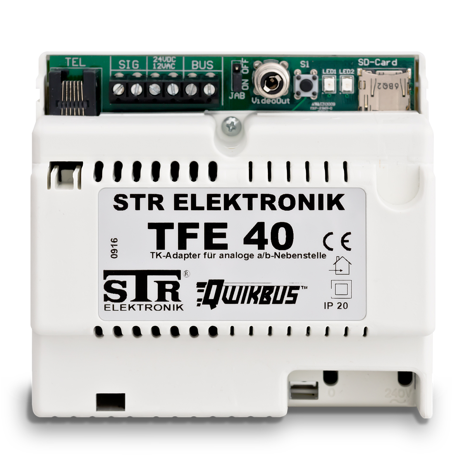 Die Türfreisprecheinrichtung TFE40 dient zur Aufschaltung einer Qwikbus- Anlage auf eine Telefonanlage. Sie wird wie ein Telefon als Nebenstelle an der Telefonanlage angeschlossen. Die Montage erfolgt auf einer Hutschiene nach DIN EN 60715.